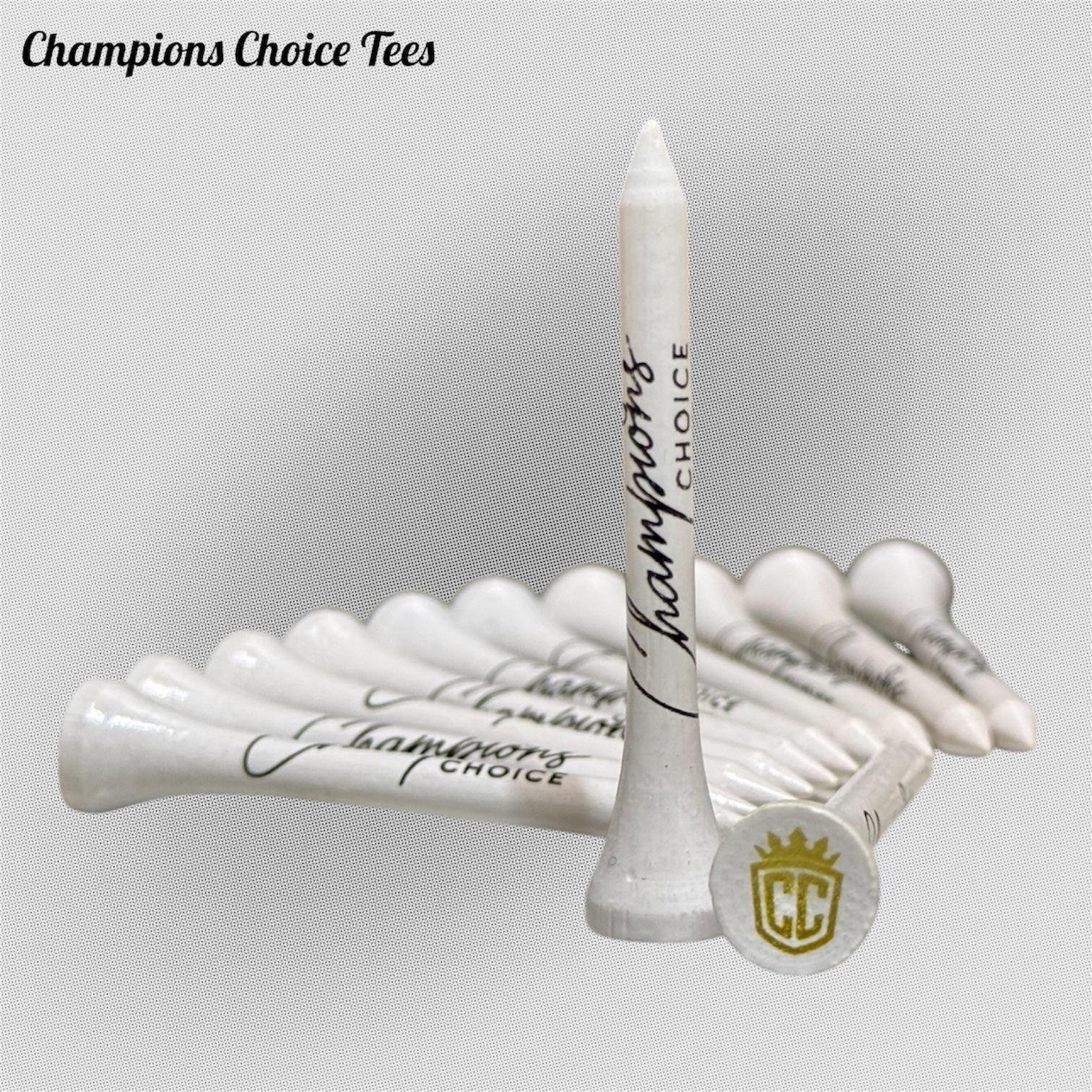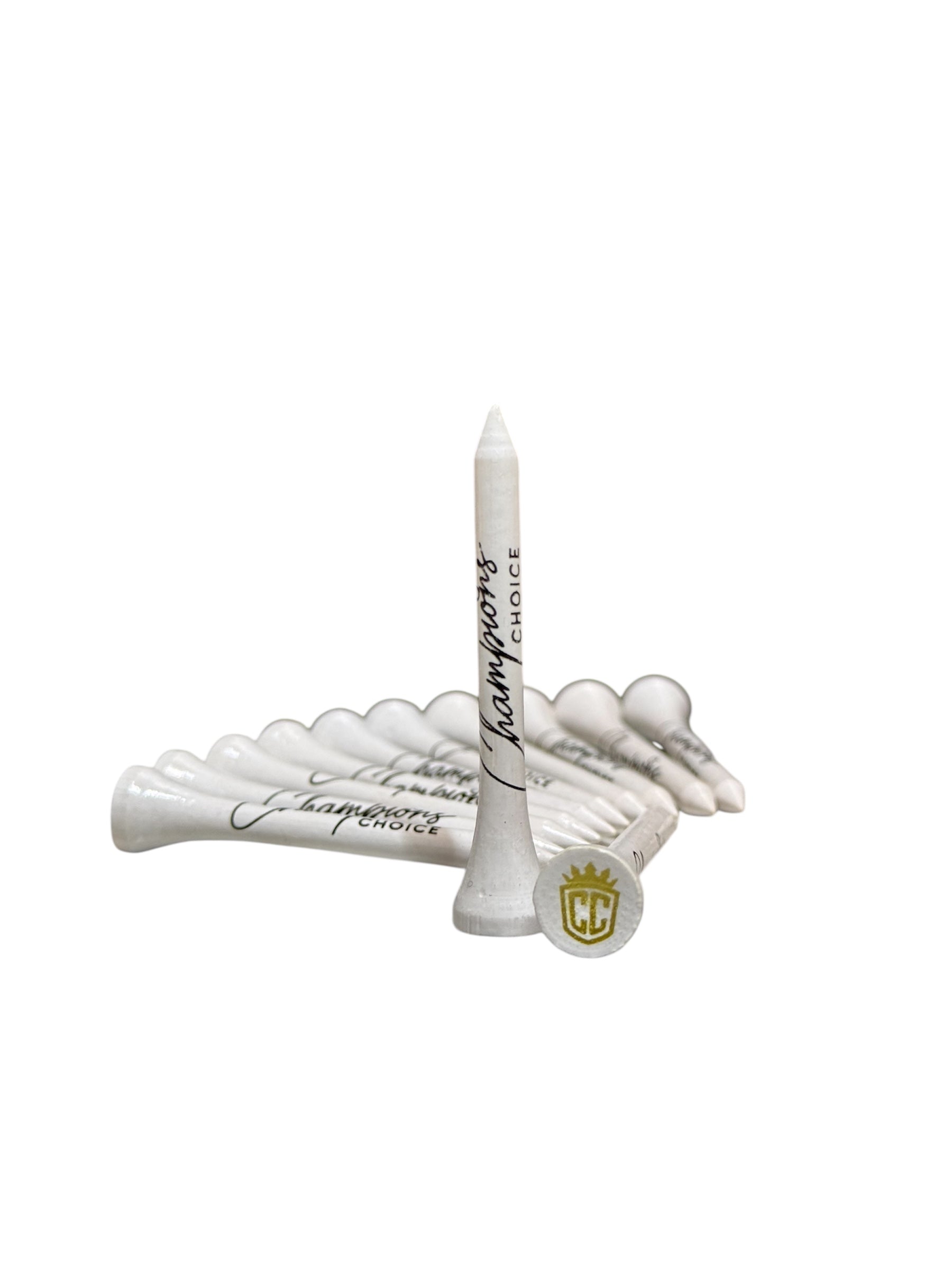 Elevate your game with Champion’s Choice bamboo golf tees in a sleek white and gold design. Durable, eco-friendly, and built for performance, these premium tees combine sustainability with style—perfect for golfers who demand both quality and class.